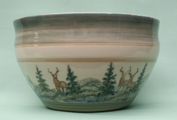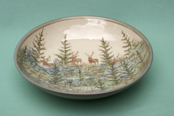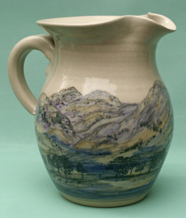 I use under glaze colour with a clear glaze on top for the Landscape ceramics. As each is hand painting it takes time to make a piece if there is a fault in the firing or glazing, you have to make a new one. So they are expensive to make. All the pottery will go in the oven, microwave and dishwasher. Some of following where made for commissions.